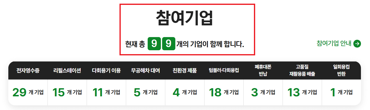 - 일회용 컵 반환 : 개당 200원