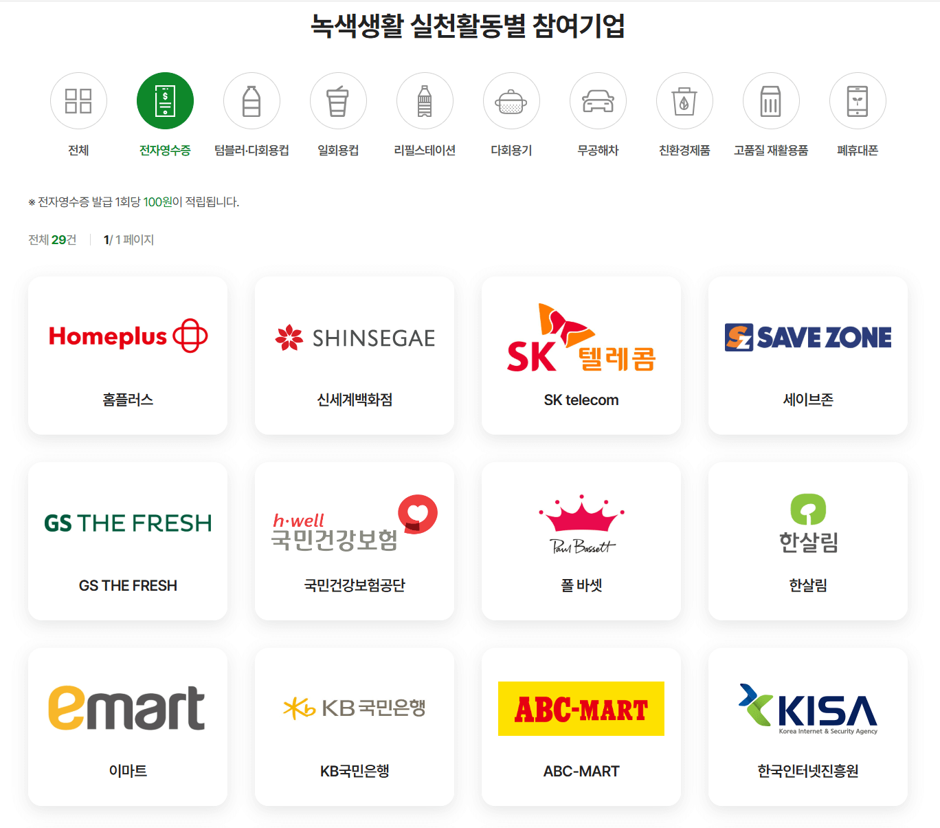 종이영수증이 아닌 전자영수증 발급받기부터 친환경제품 사용하기 등이 간단한 예입니다.