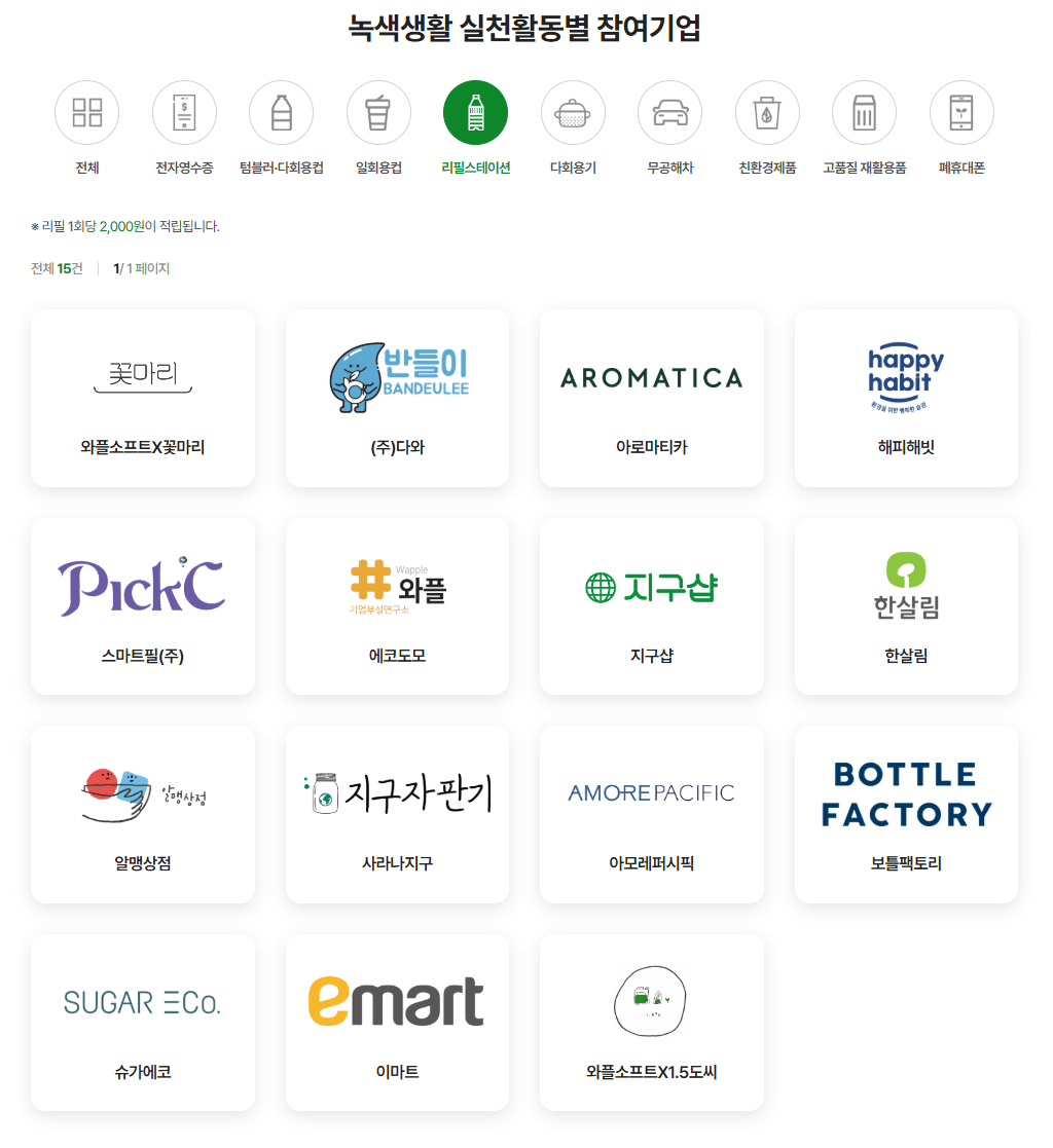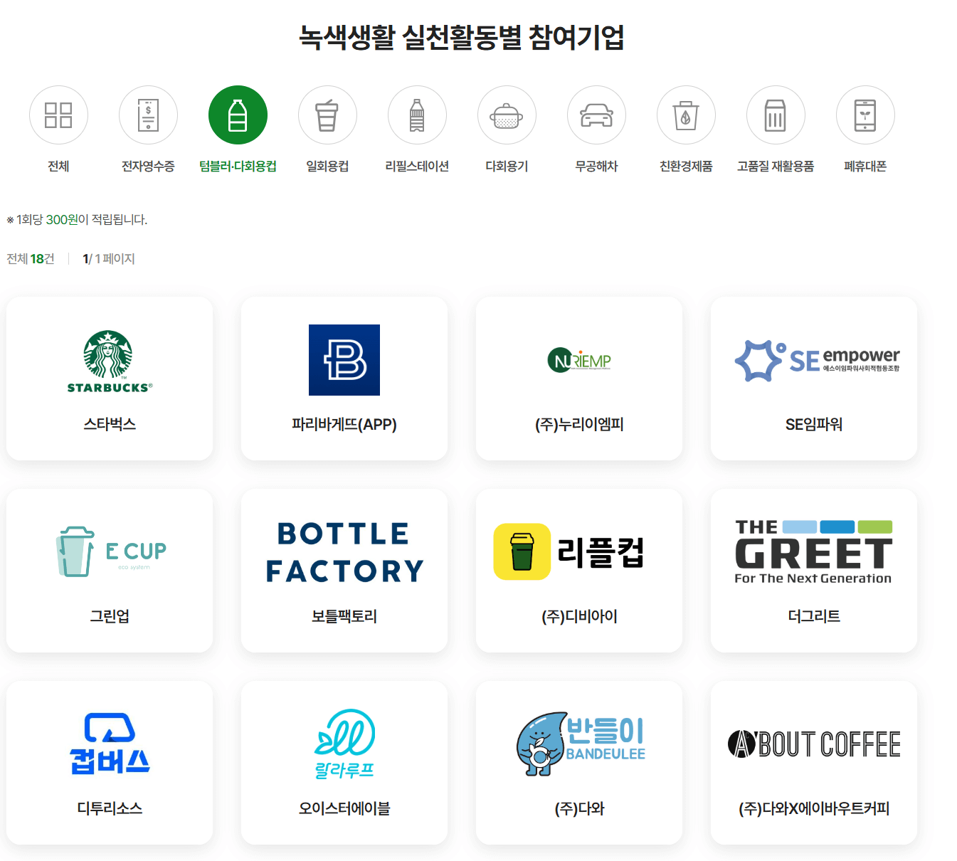 - 텀블러/다회용 컵 이용 : 개당 300원