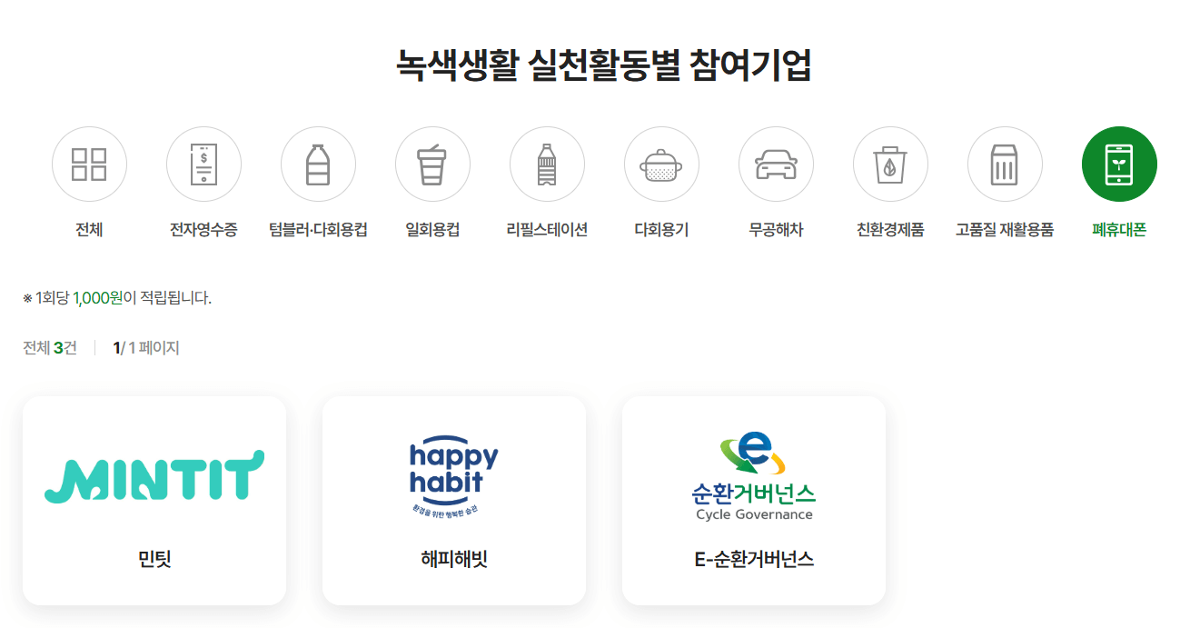 이렇게 쌓은 포인트는 현금으로 돌려받는 것이 가능하고, 모바일 페이 등으로 전환하여 사용할 수도 있습니다.