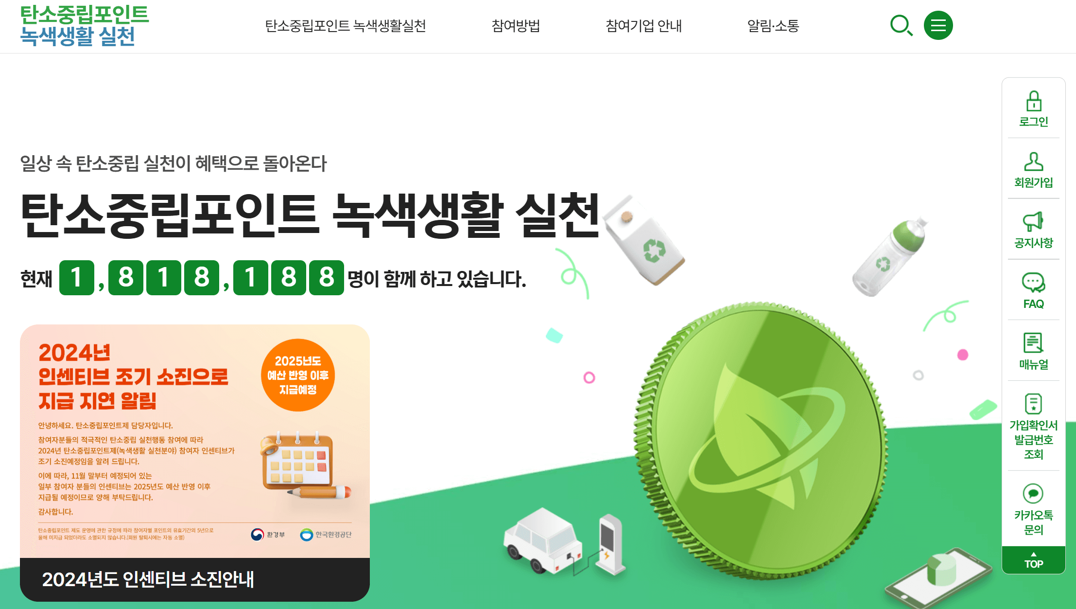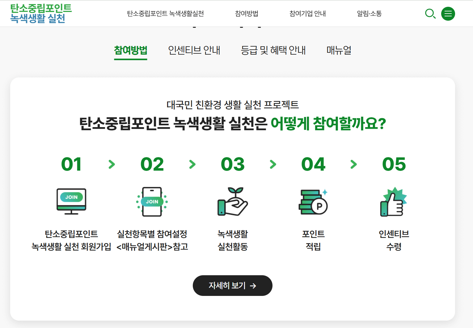 - 참여 방법 : 녹색생활 실천 누리집 홈페이지에 접속해 회원 가입만 하면 참여 가능