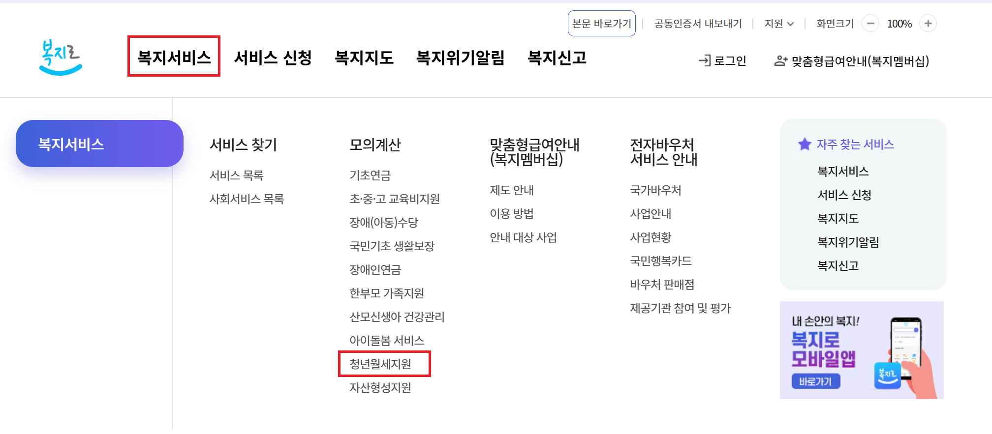 - 복지로 홈페이지 접속 (www.bokjiro.go.kr) 또는 모바일 앱 실행